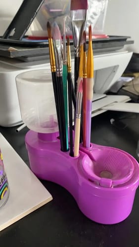 I bought this brush cleaner for my granddaughter and it was so much better than a cup of water. I really like that you can have fresh clean water time after time.