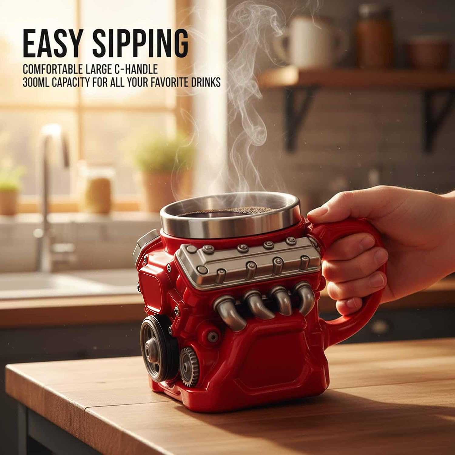 【Attractive Look】: Crafted with intricate V8 engine motifs, this Retro Engine Coffee Mug boasts a truly creative and eye-catching design that car enthusiasts will appreciate for its realistic charm to power and precision